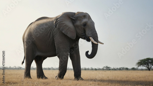 © @uniturehd, Obraz premium Large Elephant Standing in Dry Grass Field