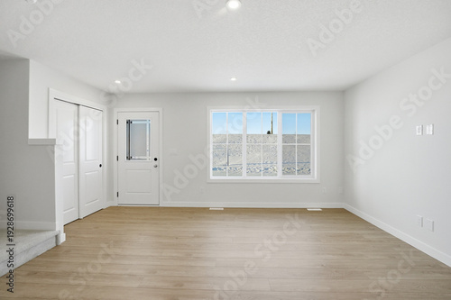 © Scott Prokop, Fototapeta premium Large, empty living room with a white door and a window
