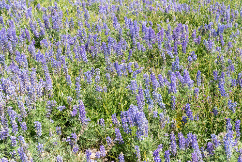 Naklejka premium Large field of purple lupine wilderflowers in bloom in summer