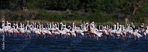 Naklejka premium Large flocks of Rosa Flamingo, Phoenicopterus roseus, on lakes in Sardinia