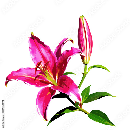 © Mahmuda, Naklejka premium Large flower and a bud of a bright red lily vector illustration (8)