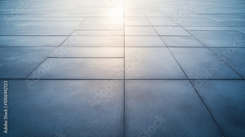 © Elmira, Obraz premium Large-format porcelain slabs create a sleek and contemporary patio design, showcasing subtle textures and a polished finish under bright sunlight with ample negative space