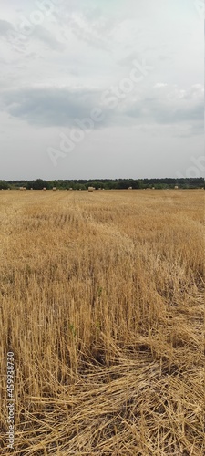 Fototapeta premium large golden field with haystacks