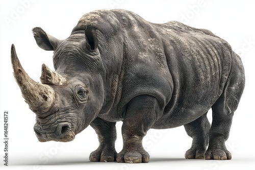 © Bond, Fototapeta premium Large Gray Rhinoceros Standing in White Background