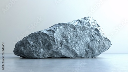 © Oleg, Naklejka premium Large gray rock positioned in a minimalist indoor space with gray walls and floor