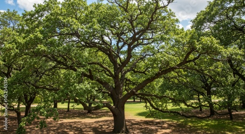 © DanadyaksaDen, Obraz premium Large Green Tree in Sunny Landscape