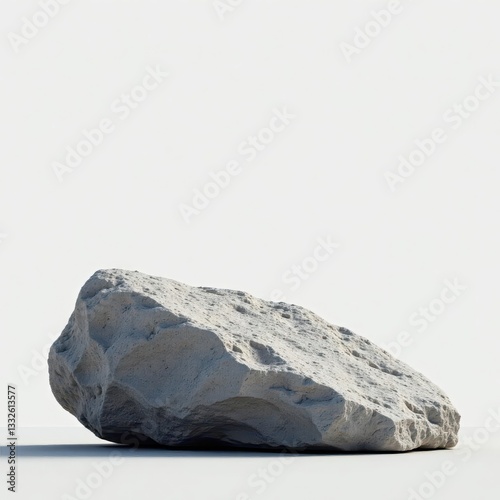 Naklejka premium Large, grey boulder, stark white backdrop Texture details visible , landscape, primitive, element
