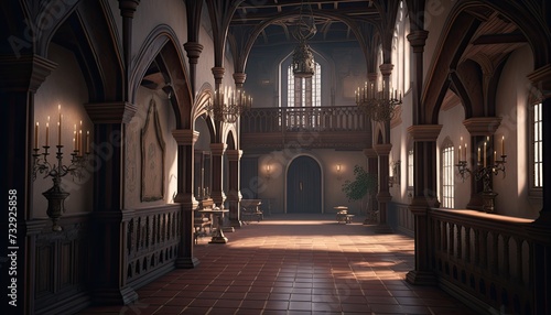 Fototapeta premium Large hall of medieval palace in gothic style.