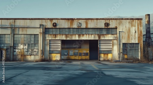 © The Little Hut, Obraz premium Large heavy industrial factory building exterior : Generative AI