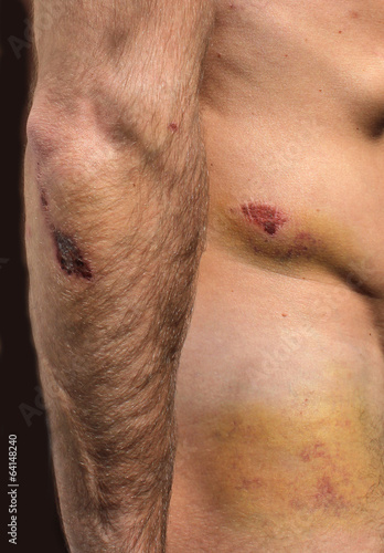 Fototapeta premium large hematoma on human hand and hip