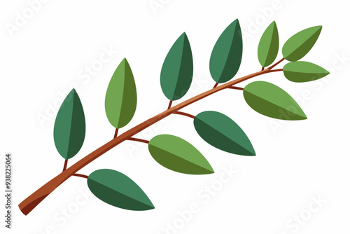 © design master, Fototapeta premium Large Horizontal Brown Branch with Green Eucalyptus Leaves on White Background