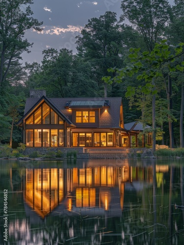 © BrandwayArt, Fototapeta premium Large house overlooking lake