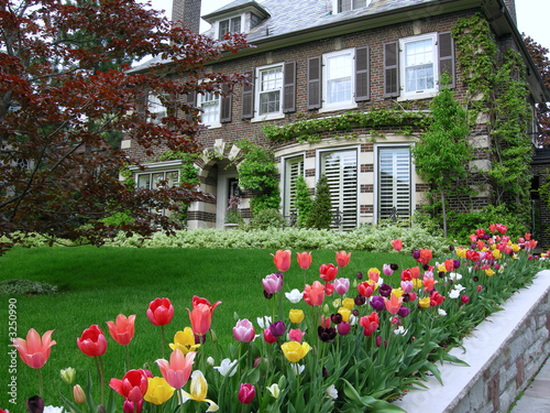 © Spiroview Inc., Fototapeta premium large house with tulip garden
