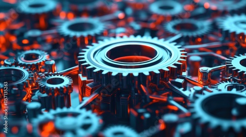 Fototapeta premium Large interconnected network of gears symbolizing corporate competition, with...