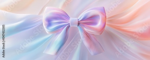 Fototapeta premium Large iridescent bow on flowing pastel silk fabric