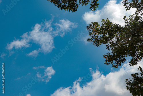 Obraz premium large isolated clouds in a blue sky and tree