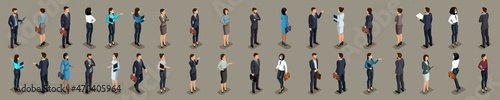 Fototapeta premium Large isometric set of 3D businessmen. Businessmen and business lady, front...