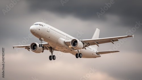 Fototapeta premium Large jet airplane flying above the cloud