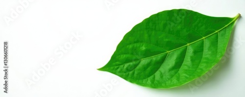 Obraz premium large leaf with veins prominent on a white background, natural form, green