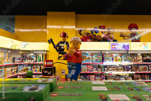 © Ruslan, Obraz premium Large Lego minifigure statue in toy store