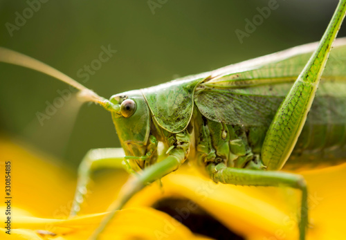 © Gary, Fototapeta premium Large locust sitting on yellow flower, Hungary