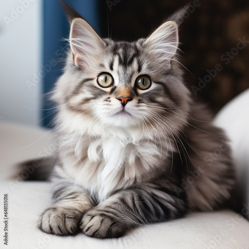 © Ashen, Fototapeta premium large longhair gray tabby cute kitten