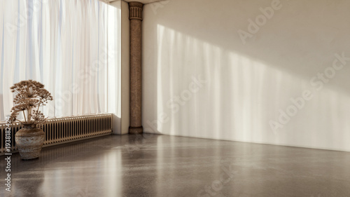 © 3DarcaStudio, Naklejka premium Large luxury modern bright interiors Living room mockup illustration 3D rendering Generated Color Image