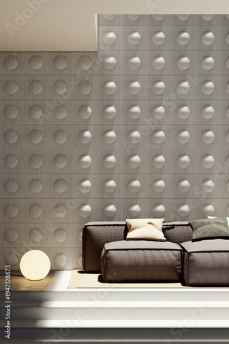 © 3DarcaStudio, Naklejka premium Large luxury modern bright interiors Living room mockup illustration 3D rendering Generated Color Image