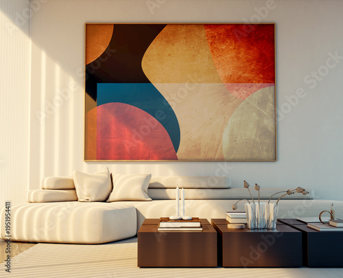 © 3DarcaStudio, Obraz premium Large luxury modern bright interiors Living room mockup illustration 3D rendering Generated Color Image