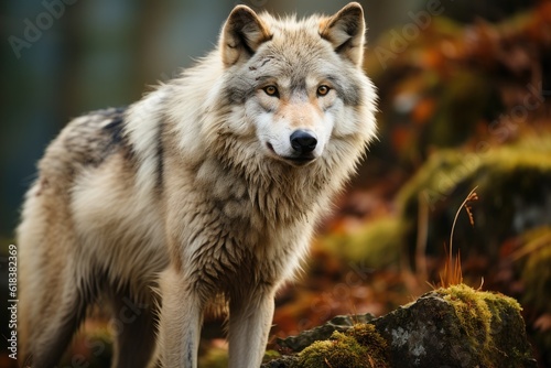 © kardaska, Fototapeta premium Large male grey wolf. Generative AI