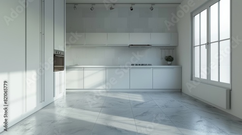 © imlane, Fototapeta premium large minimal empty greyish white kitchen.