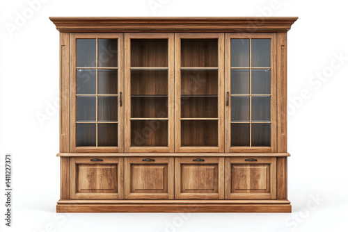 Obraz premium Large oak display cabinet with glass doors showcasing a collection of...