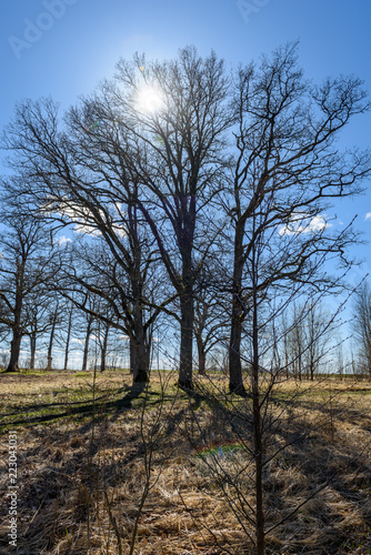 © Martins Vanags, Obraz premium large oak tree in early spring with blue sky