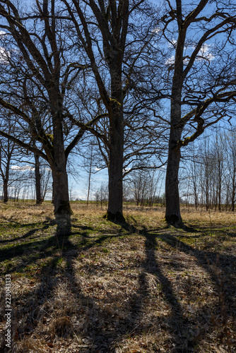 © Martins Vanags, Obraz premium large oak tree in early spring with blue sky
