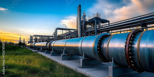 Naklejka premium Large oil pipeline and gas pipeline in the process of oil refining and the movement of oil and gas Generative AI