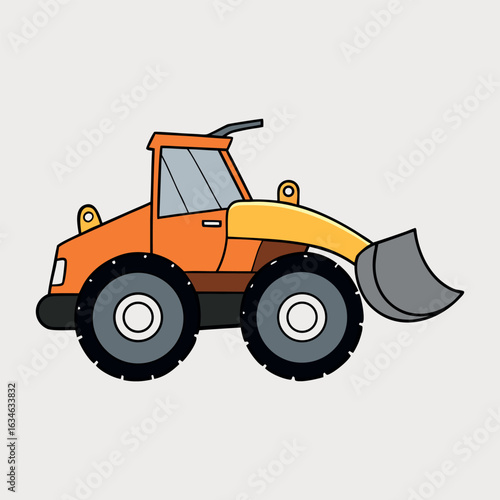 Fototapeta premium Large orange construction vehicle with black tires industrial heavy machinery illustration