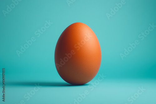 © FranKissStudio, Fototapeta premium Large orange egg is sitting on a blue background
