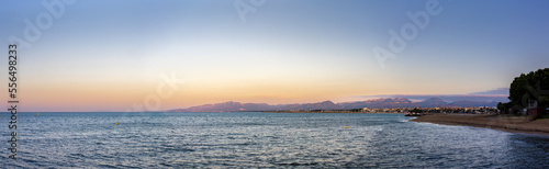 © porqueno, Fototapeta premium Large Panoramic View of Mediterranean Coastal City at Sunrise