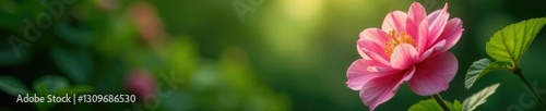 © Jameo, Fototapeta premium Large pink flower in full bloom amidst lush greenery, nature, botanical
