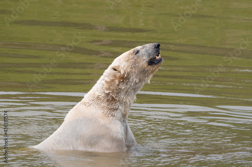 © Ian, Fototapeta premium Large Polar Bear Playing in Water