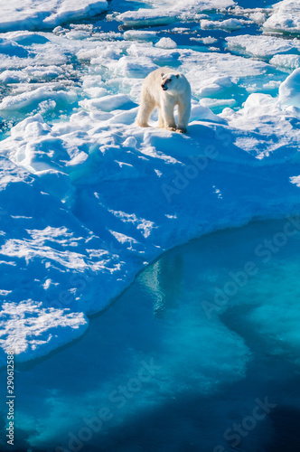 Naklejka premium Large polar bear walking on the ice pack in the Arctic Circle, Barentsoya, Svalbard, Norway