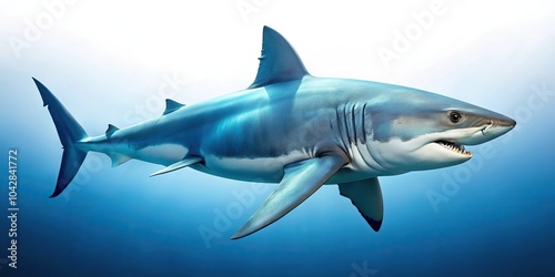 Obraz premium Large predatory marine shark swimming in profile view, white color