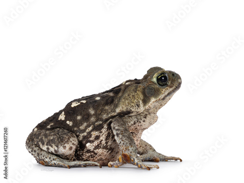 © Nynke, Naklejka premium Large Rhinella Marina or Cane toad, sitting side ways. Looking away from camera. Isolated on a white background.