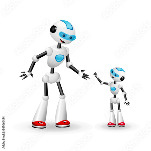 Naklejka premium Large robot talking to small one. Vector illustration isolated on white background