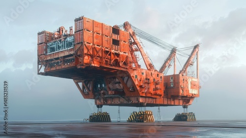 © Andi, Fototapeta premium Large, rusty, orange industrial crane on a platform.