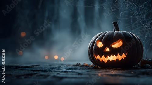 Naklejka premium Large Scary Halloween Pumpkin with Carved Eyes and Glowing Face