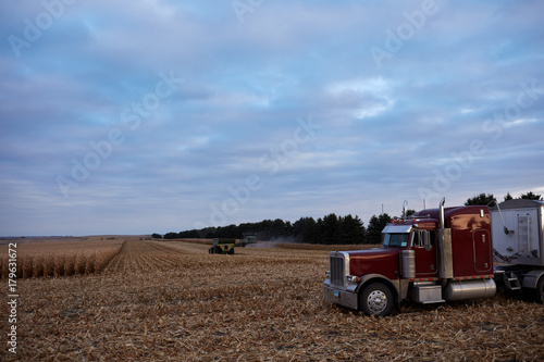 © Colby, Obraz premium Large semi waiting at the edge of a maize field