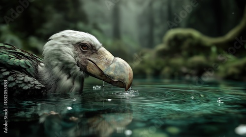 © vlntn, Obraz premium Large Shoebill Drinking in Forest Pond