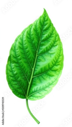 © ຈໍາປາ ຈໍາປາ, Obraz premium Large single green leaf isolated against white with veins, greenery, leaves, leaves