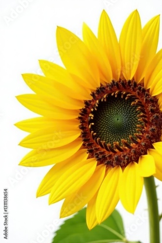 © ORAWAN, Fototapeta premium Large single sunflower, sharp focus, pure white background, studio shot, agriculture